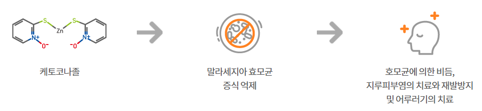 니조랄의 주성분인 케토코나졸은 비듬과 지루성 피부염, 어루러기의 원인균인 말라세지아 효모균 증식을 억제함으로써 질환을 치료합니다. 말라세지아 효모균은 성인의 피부에서 흔하게 발견되는 균이지만, 말라세지아 효모균이 평소보다 과도하게 증식하거나 면역력 저하, 스트레스 등에 의해 비듬, 지루성 피부염, 어루러기 등의 피부질환을 일으킬 수 있습니다.